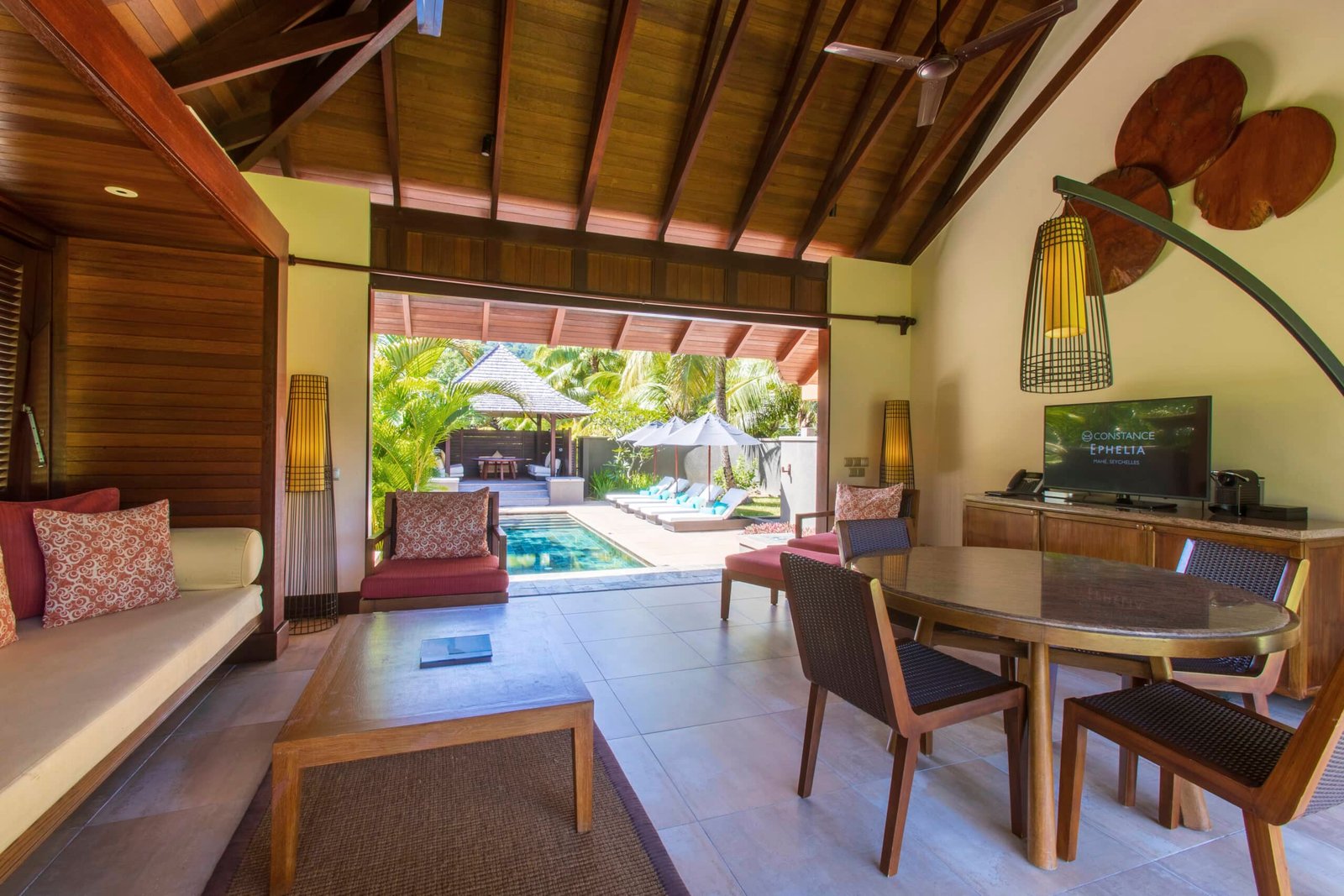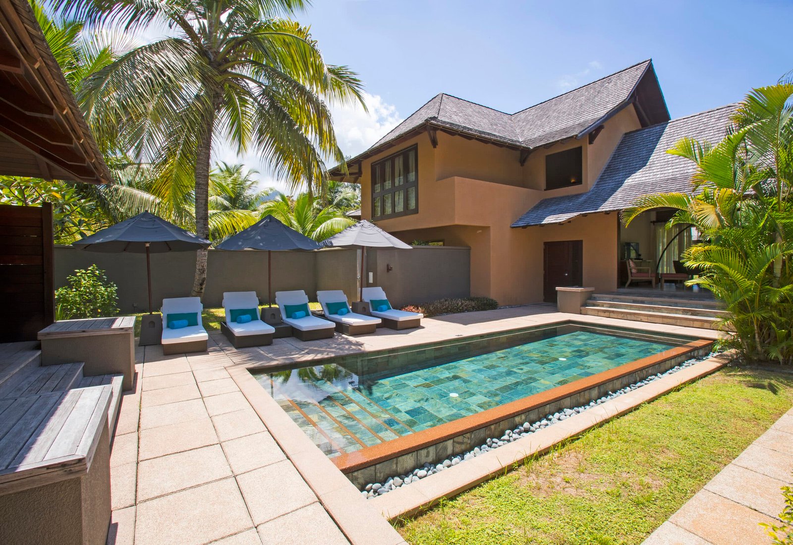 The villas spaciously designed and stylishly decorated consist of three bedrooms (one master bedroom with an en suite bathroom and two other bedrooms sharing one bathroom). In the courtyard a private swimming pool as well as an outside dining kiosk. Other facilities are: LCD TV, mac mini, mini-bar, tea and coffee facilities, complimentary bicycles, Nespresso machine with capsules and complimentary WI-FI.