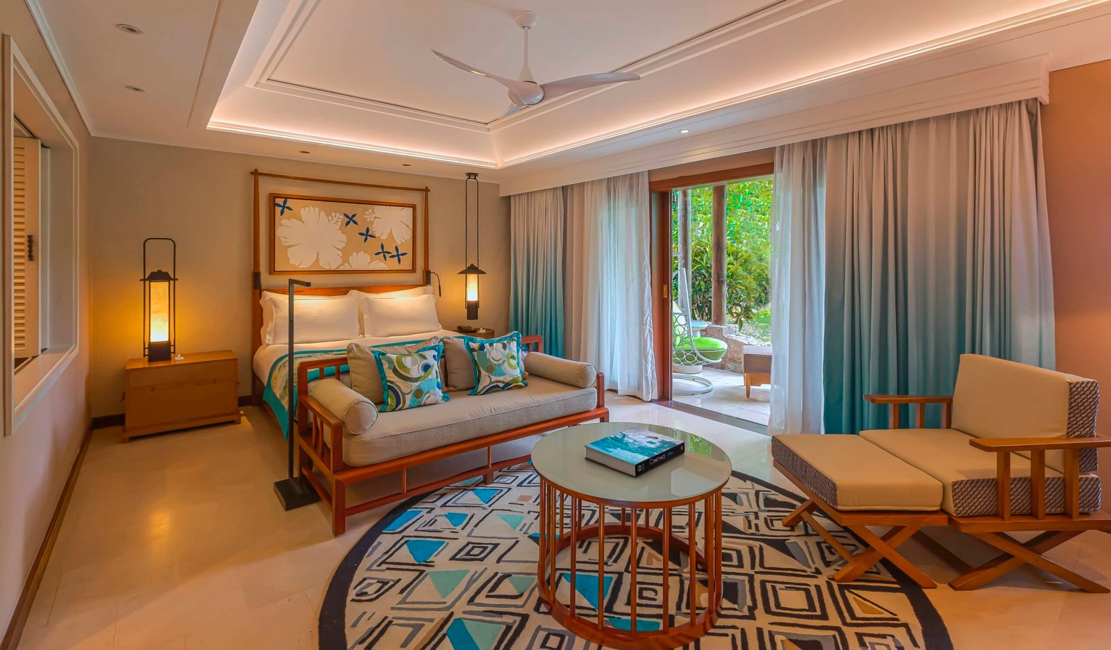 The Junior Suites are constructed in wood, marble, limestone and pink granite. The emphasis is on privacy, intimacy and harmony with the natural surroundings. Each suite is designed in a modern yet luxurious style with large bathrooms and a fully furnished terrace/balcony with private dining space.